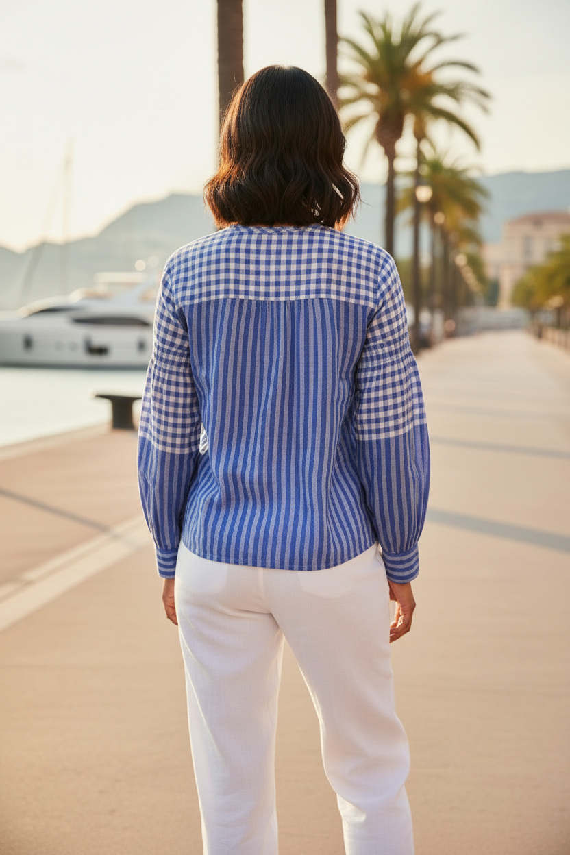 Blue Check Smocking Top