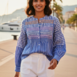 Blue Check Smocking Top