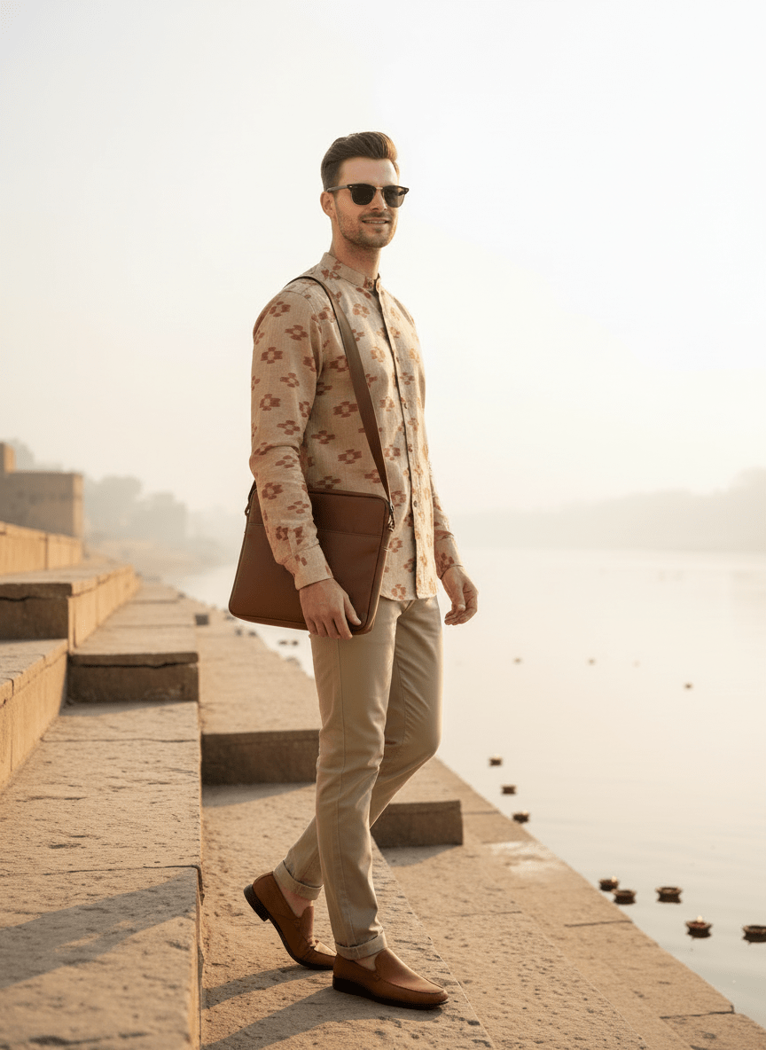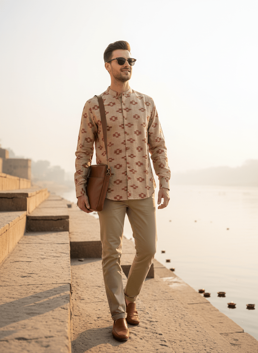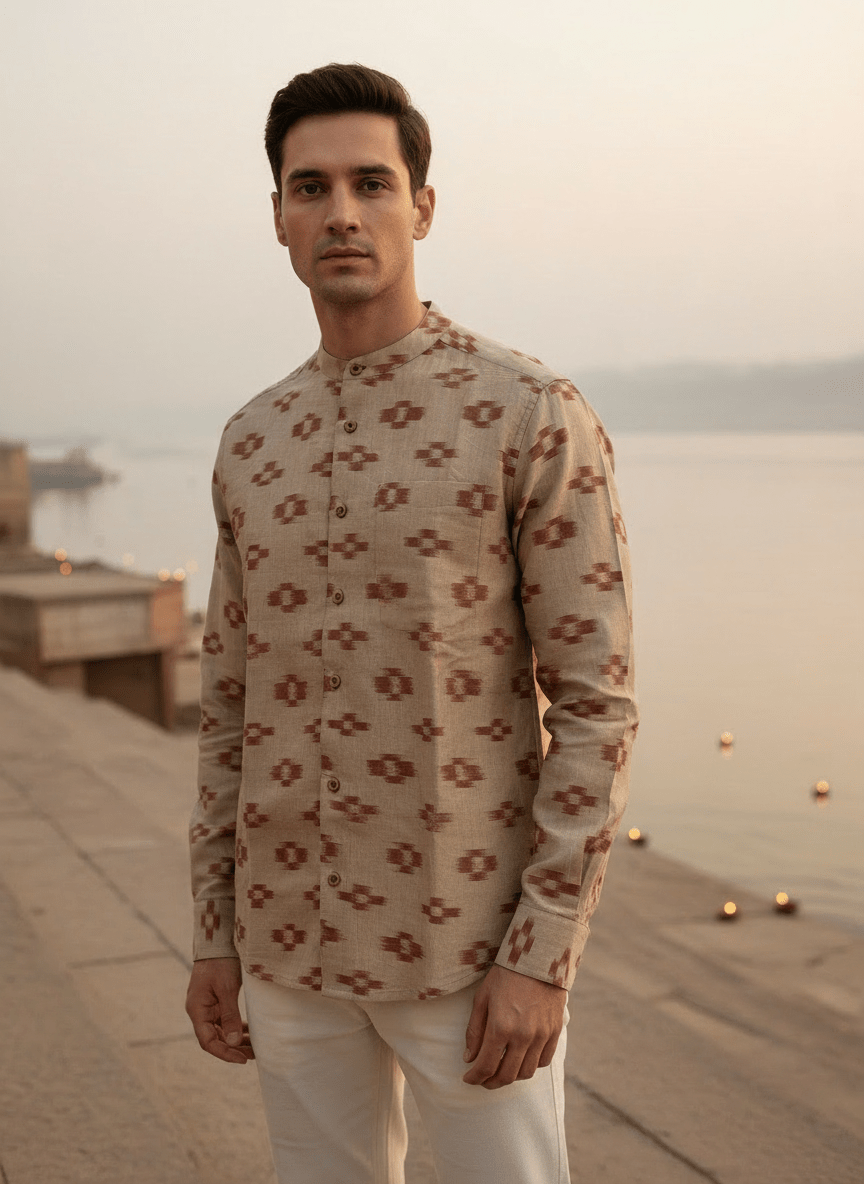 Step into effortless style with this Ikat Handloom Casual Shirt, woven from 100% pure cotton in over 5 days by Artisan Aparna from Maniabhandha in Odisha. Featuring traditional Ikat motifs and a relaxed fit, this shirt combines cultural craftsmanship with everyday ease. Breathable, soft, and lightweight, it’s perfect for workdays, weekends, or casual gatherings.