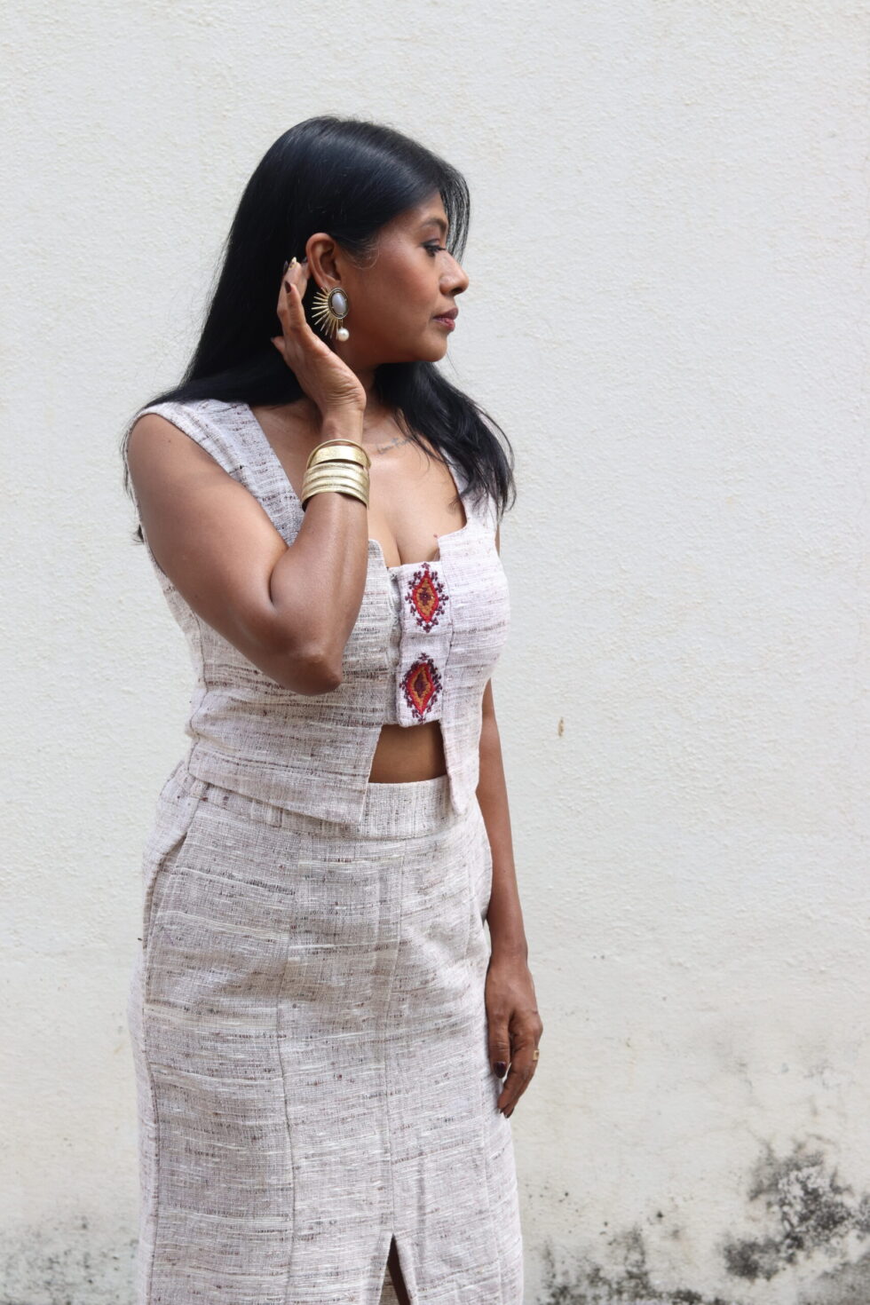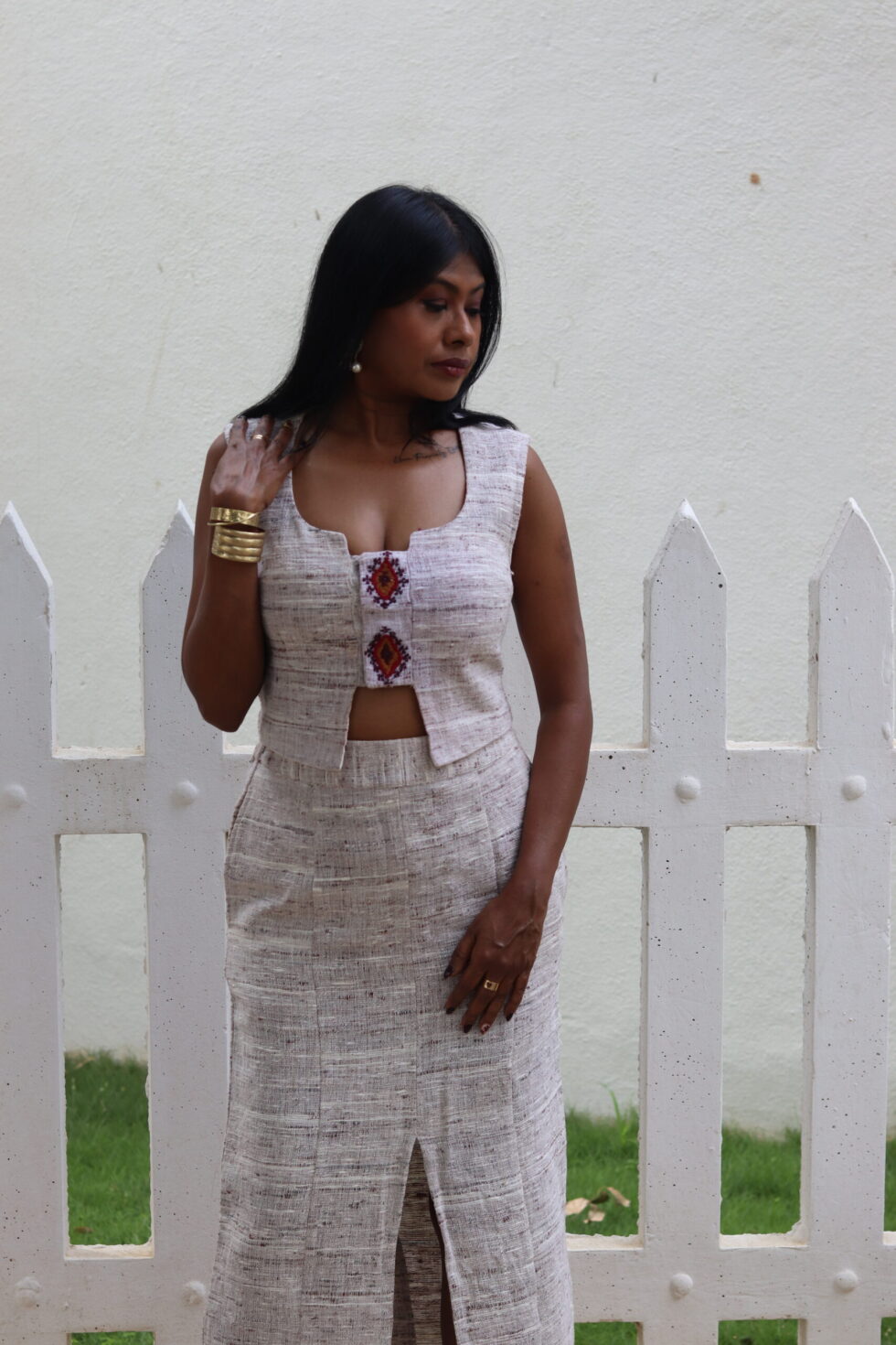 Handwoven Textured Top & Skirt.