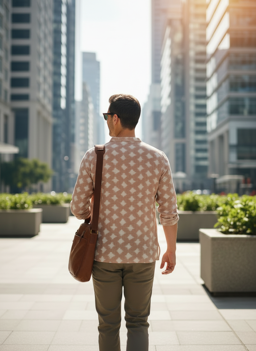 Step into effortless style with this Ikat Handloom Casual Shirt, woven from 100% pure cotton in over 5 days by Artisan Aparna from Maniabhandha in Odisha. Featuring traditional Ikat motifs and a relaxed fit, this shirt combines cultural craftsmanship with everyday ease. Breathable, soft, and lightweight, it’s perfect for workdays, weekends, or casual gatherings.