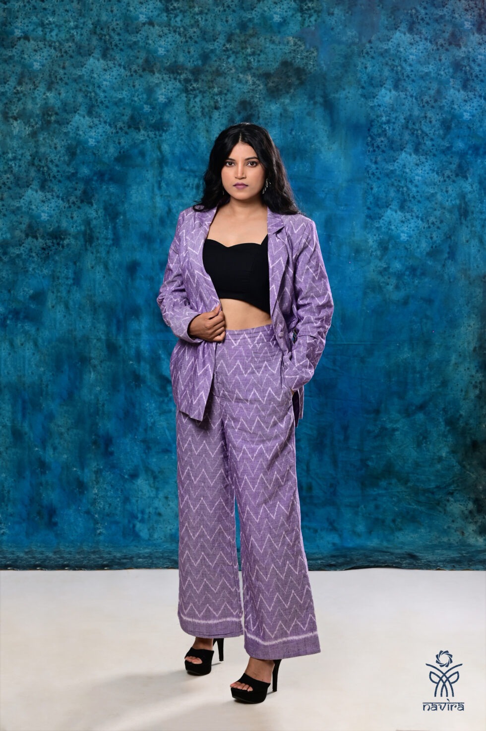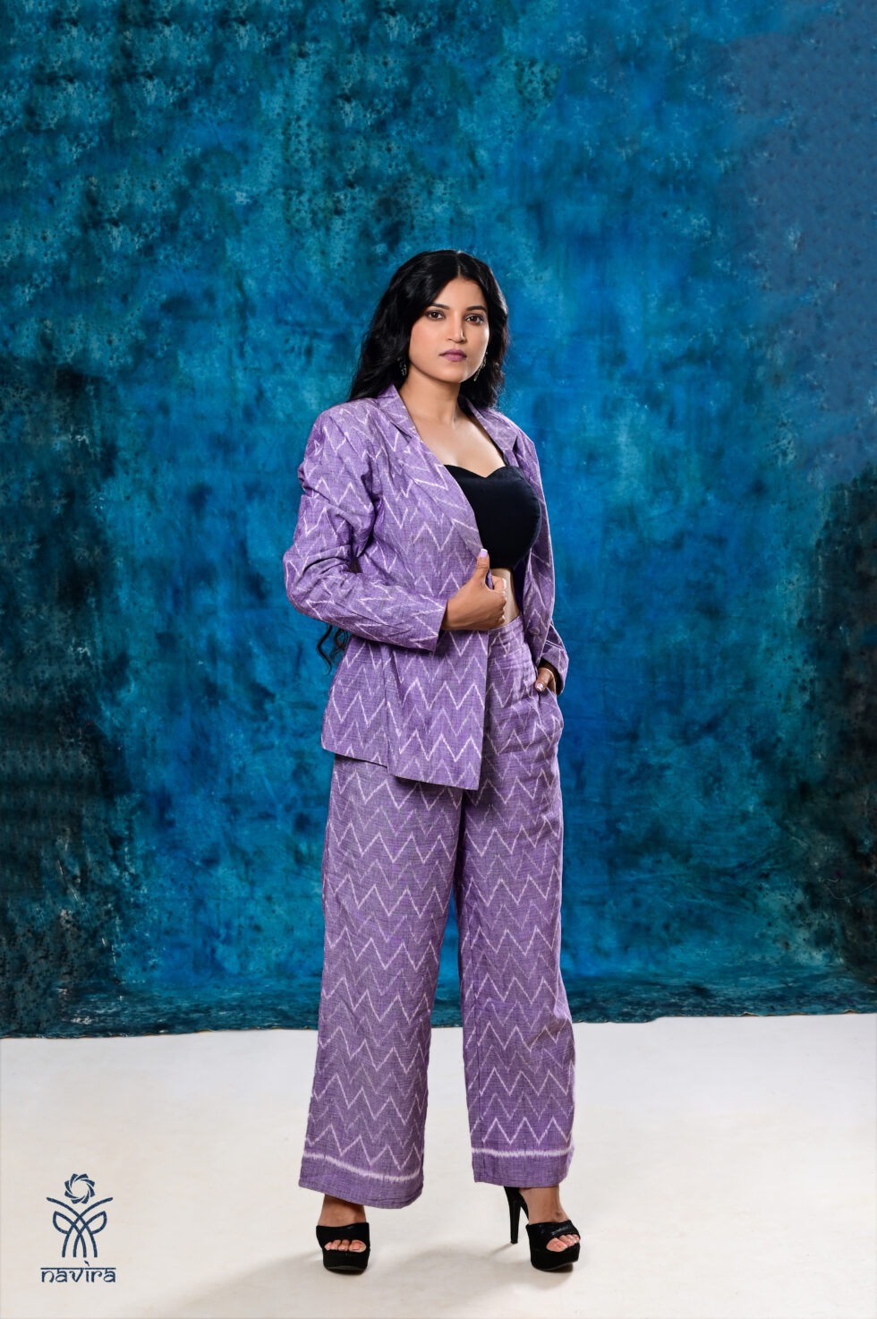 Handloom Odissa Ikat | 100% Cotton | Lilac Color Co-Ord Set | Office Look.