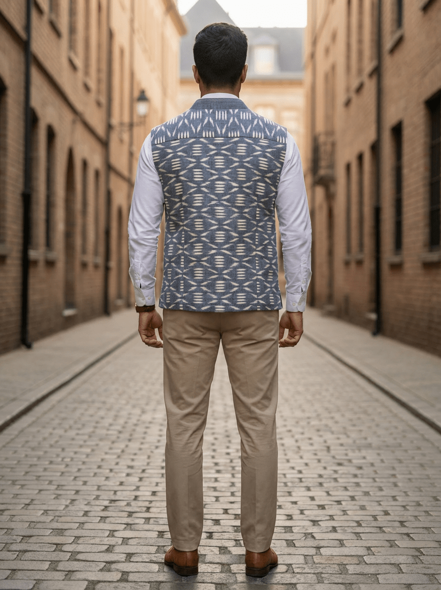 Perfect for festive occasions, office wear, or casual styling—this Ikat jacket is a conscious pick for those who appreciate heritage, sustainability, and standout design.