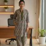Tailored with care and woven with heritage, Pochampali Handloom Cord set is been sourced from Andra Pradesh. Brings handloom to the wardrobe. Handwoven over 15 days by Artisan Murti from Andra. This is 100% cotton Handloom Pochampali Fabric. Designed for comfort, style. Wear it to any get together out office wear.