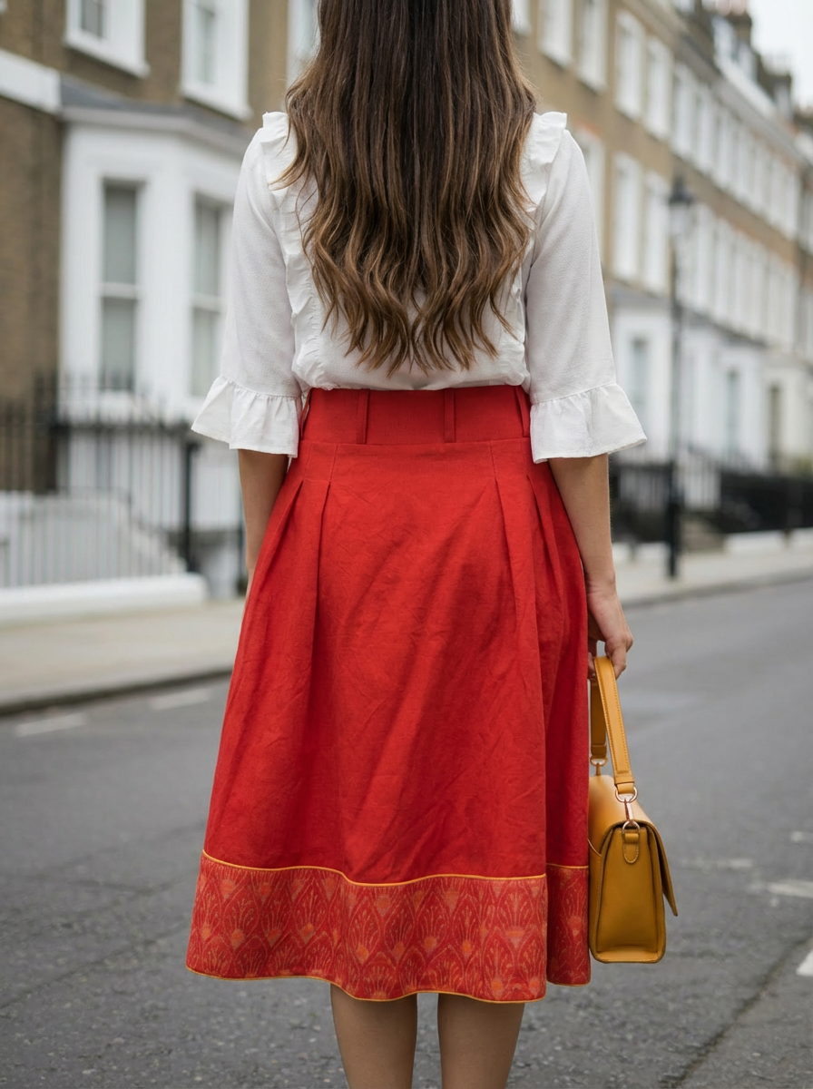 Handloom Odissa Ikat | 100% Cotton | Red Color Skirt | Pockets | Office Look.