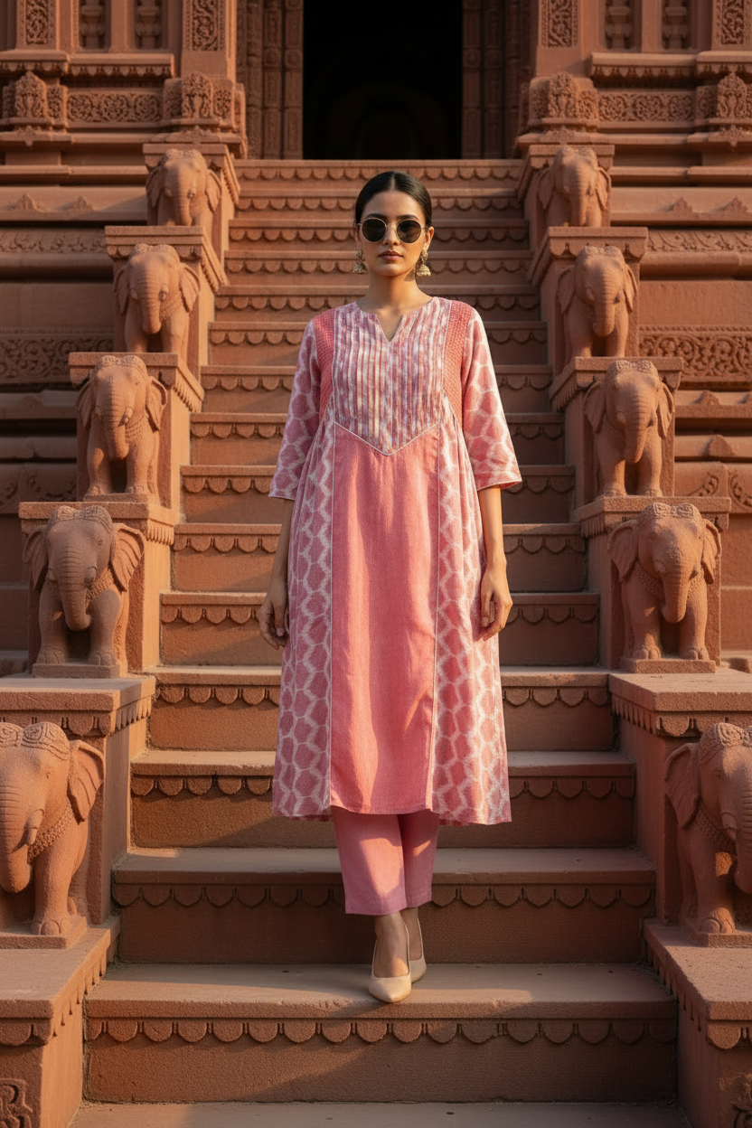 Handloom Odissa Ikat | 100% Cotton | Peach Color Kurta |